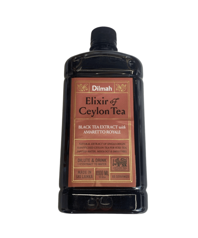 Dilmah Elixir of pure Ceylon black tea with Almond flavours , Real tea taste. Grown in a Dilmah tea garden & freshly processed and source to a high quality Tea concentrate. It’s the only tea concentrate made from 100% Pure Ceylon, single estate tea.